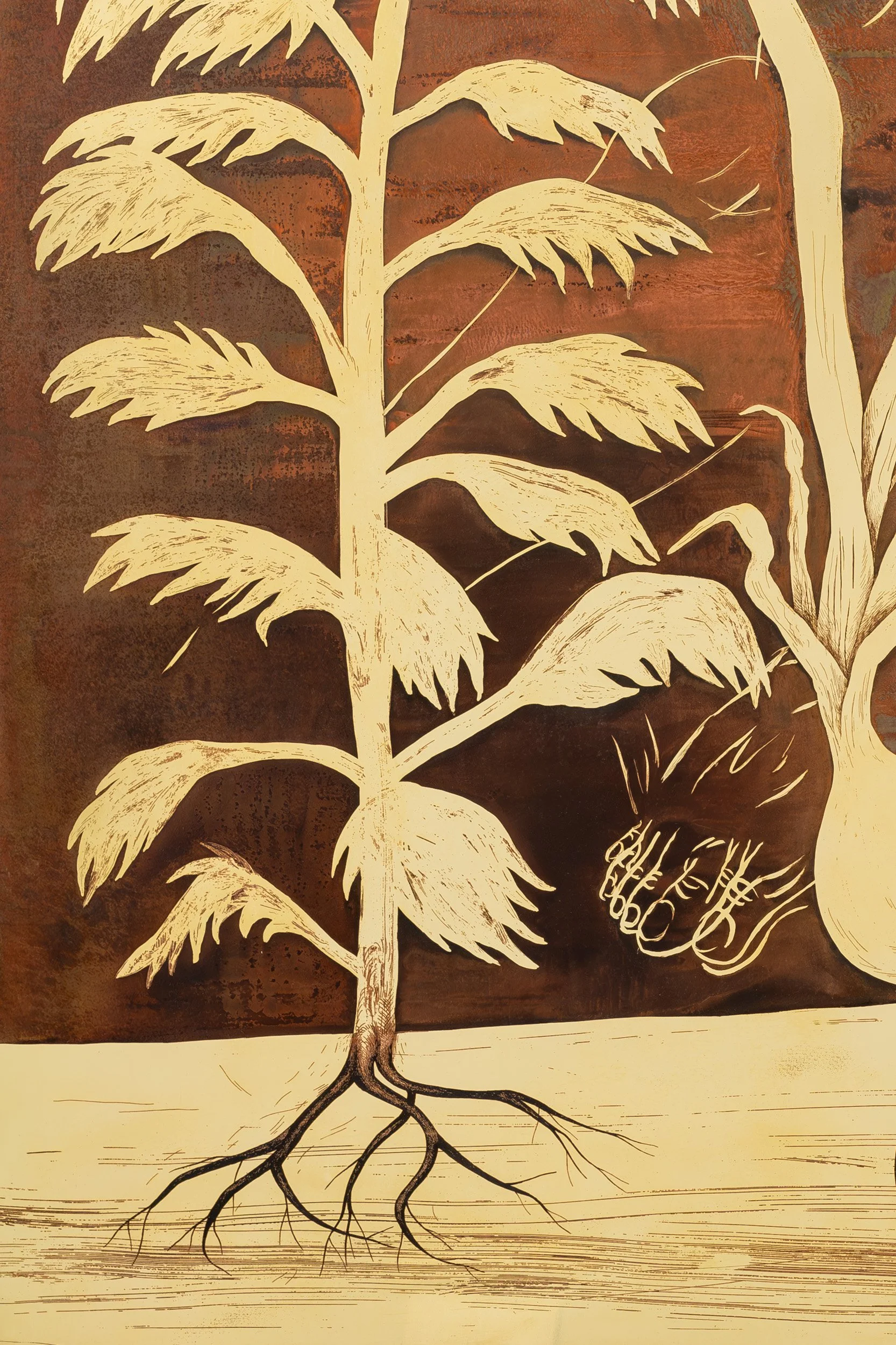 Isolation (4), 2025, acid-etched painting on brass, 80 x 60 cm
