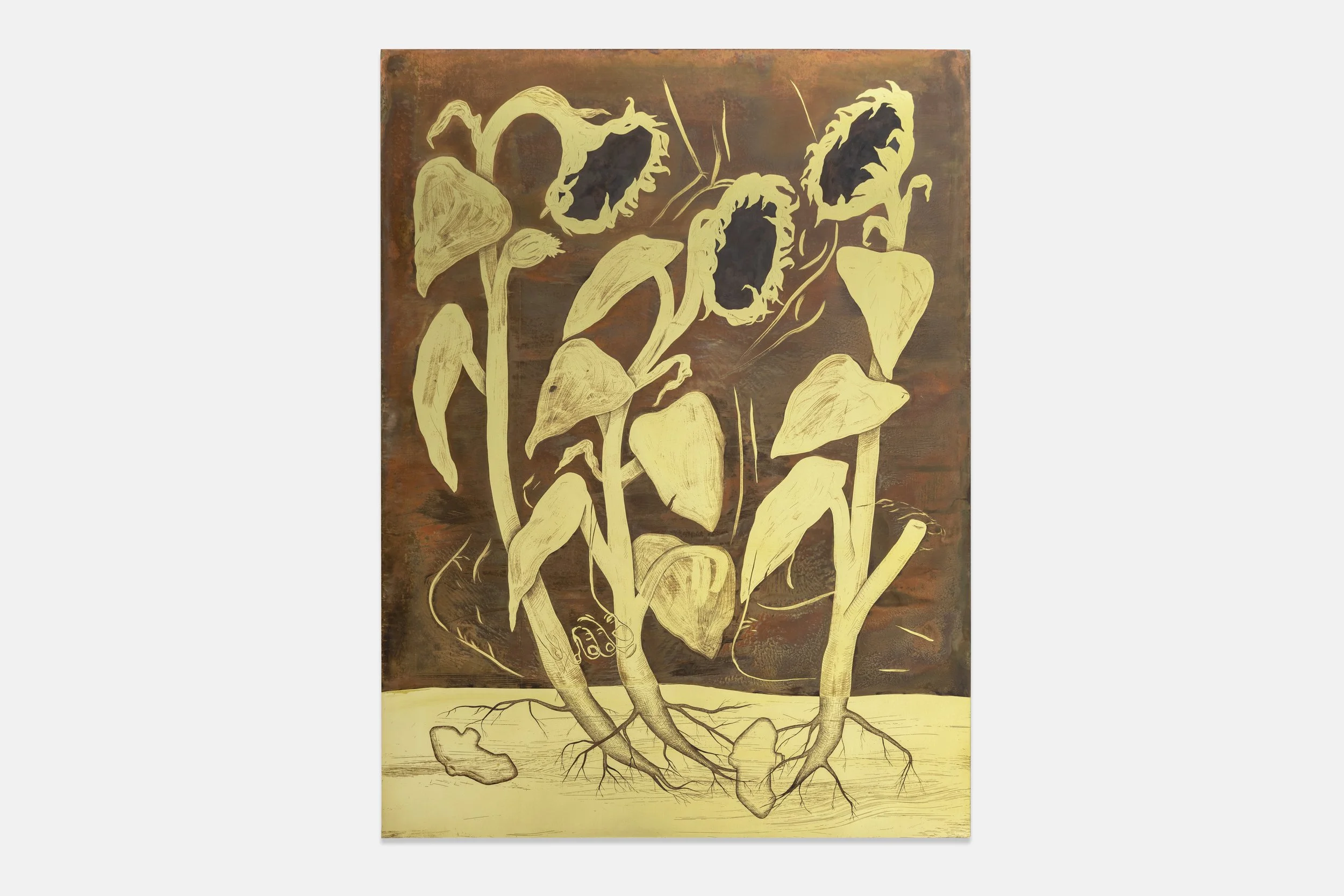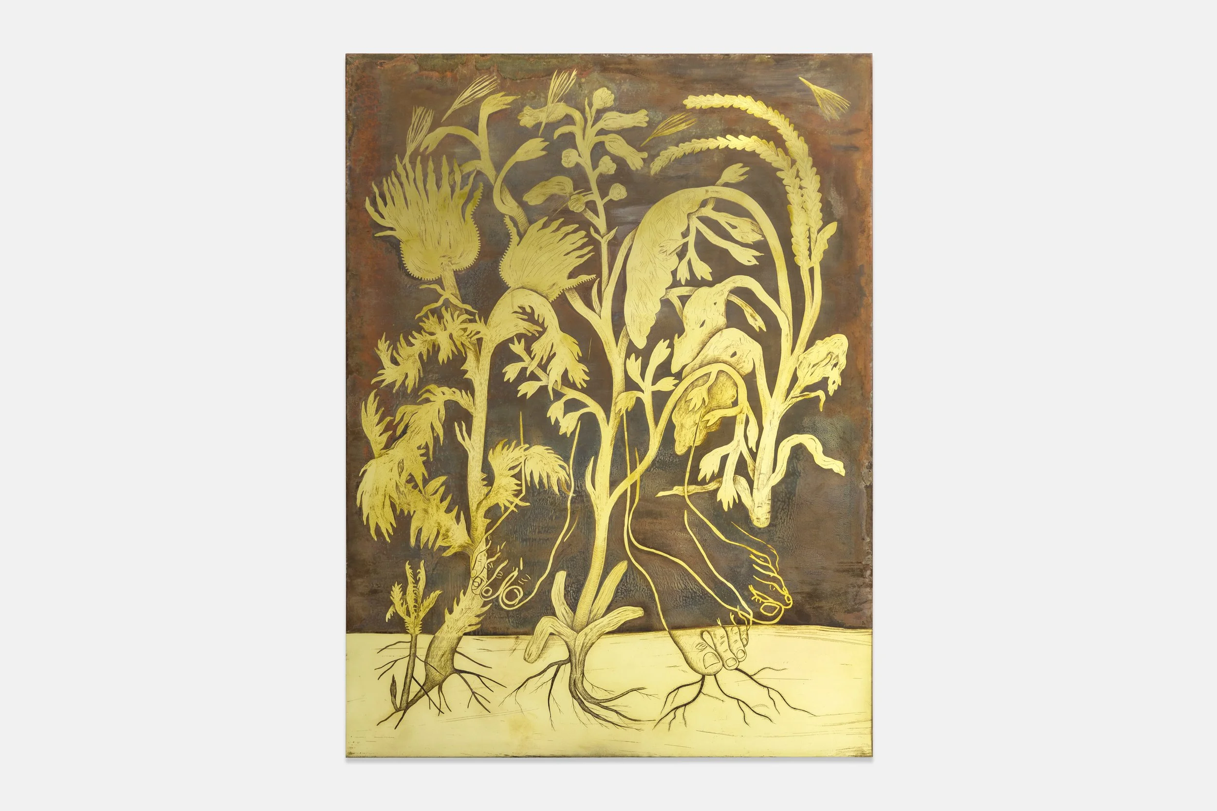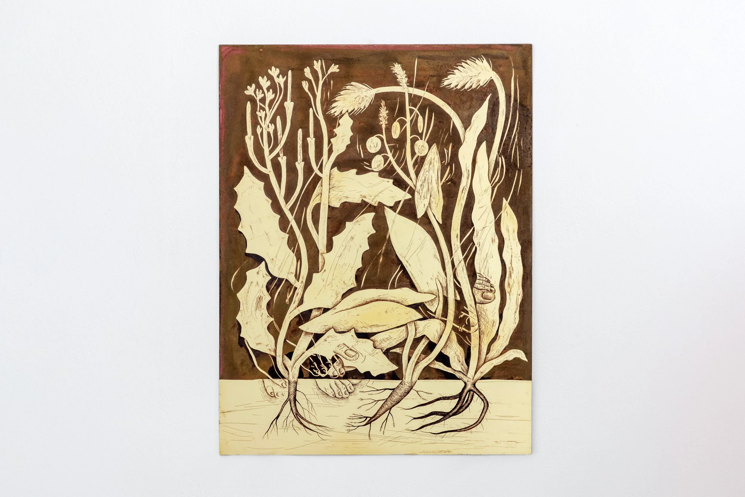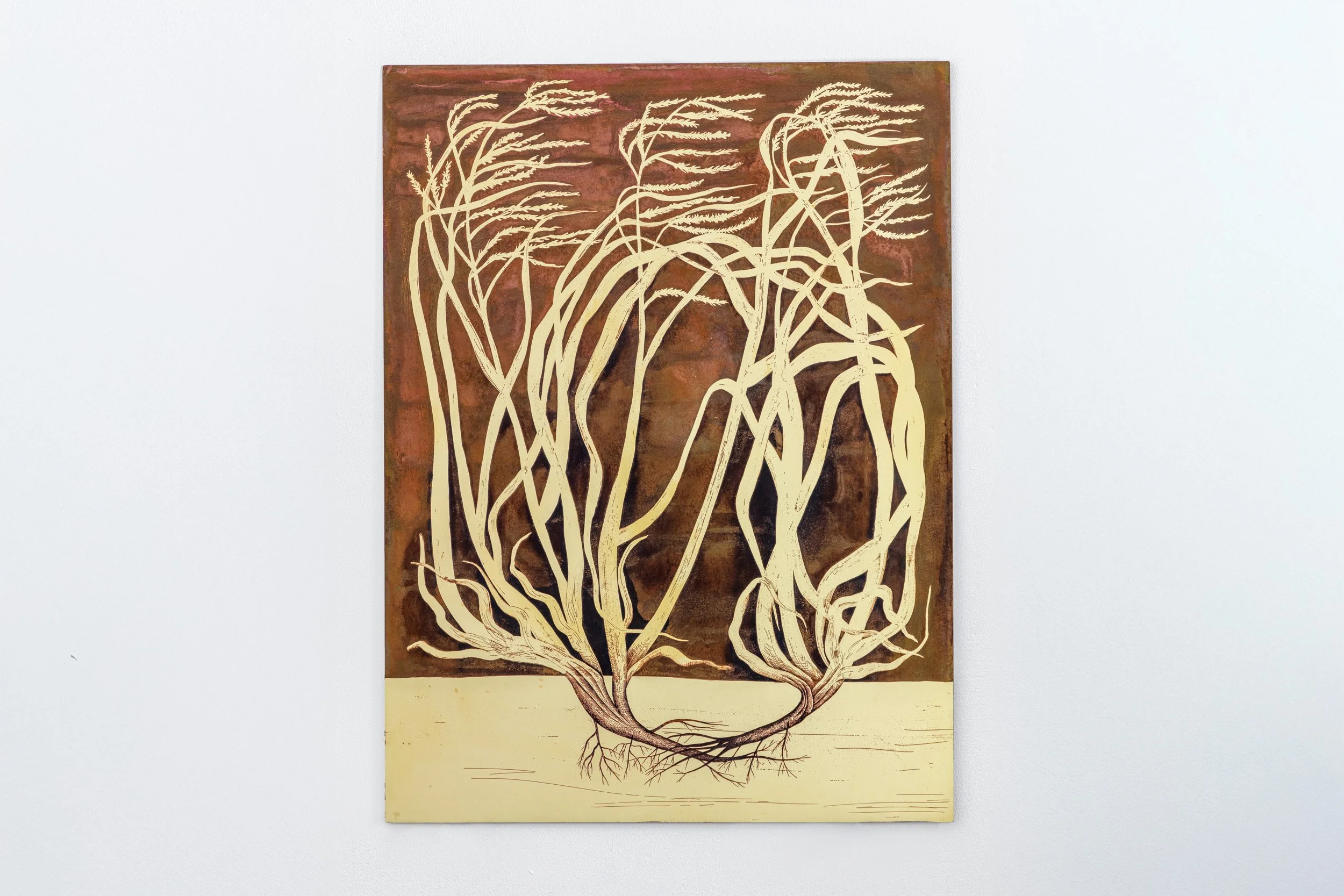 Isolation (4), 2025, acid-etched painting on brass, 80 x 60 cm